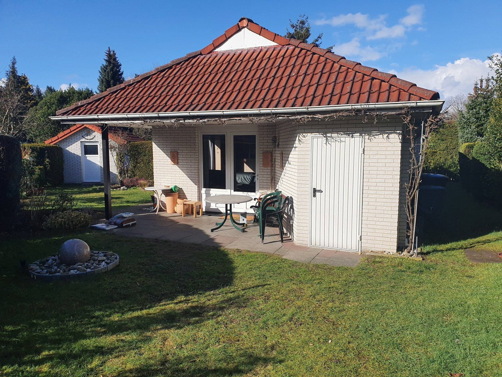 Von der Terrasse aus kann man den liebevoll angelegten Garten genießen. Dieser ist rundum eingezäunt, so dass kleine Zweibeiner wie auch Vierbeiner sich gesichert bewegen können.Auch der vorhandene Grill bietet die Möglichkeit genussvolle Abende zu gestalten.